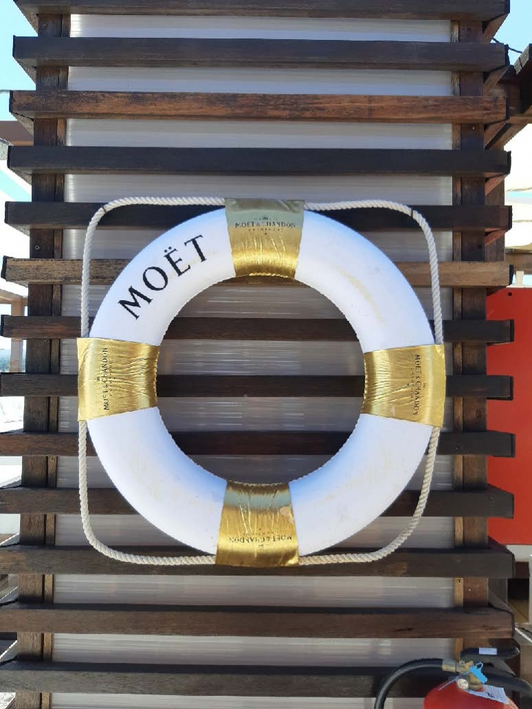 Det fanns till och med en lyxig pool som hörde till Marinan. Så vi packade badkläderna och tänkte att Va´ gott! – en drink vid poolkanten. Men det blåste lite kallt och vattnet var inte heller så varmt – så vi nöjde oss med en liten Mojito i solen. För att få sitta i de där små hyddorna behövde man spendera minst 300 Euro. Så ja – lyxigt ställe alltså – med DJ och hög musik.