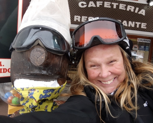 I liften upp träffade vi ett gäng britter – som var på kombinerad golf och skidresa. De hade varit här många gånger sa de. Så vi fick lite tips av dem. Till exempel att goaste lunchen äter man i byn 🙂 Sån’t är bra att veta. Vi tog en varm choklad i backan – detta vill vi dock varna för. Det var supersött och lite som att dricka chokladpudding. Vi ”vaskade” den och tog en kopp kaffe istället.