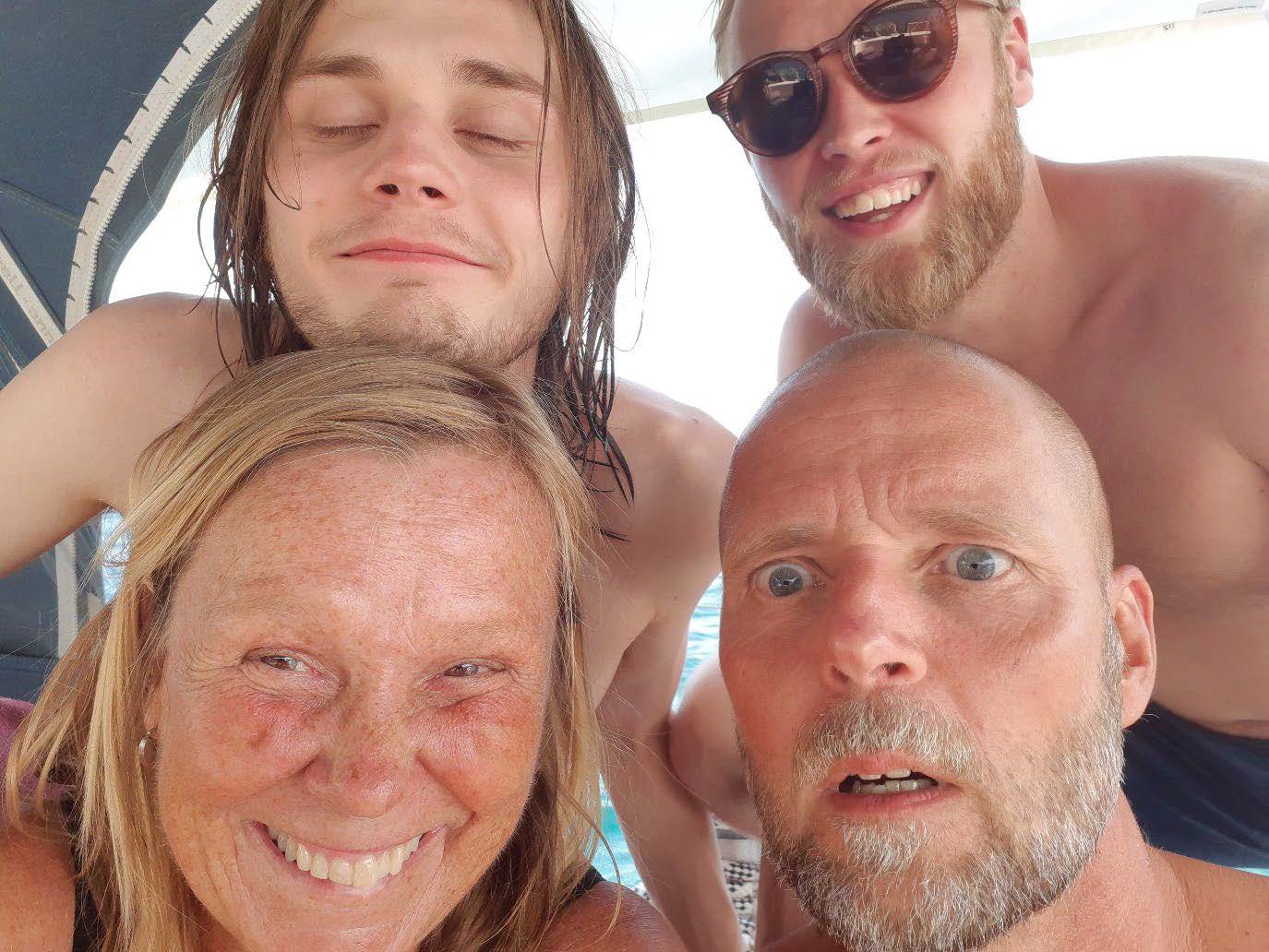 HELA familjen samlad! Så härligt! Nu har vi två sköna veckor framför oss. Bara en sådan sak. När man ska mönstra på så är det alltid lite darrigt innan allt är på plats. Var är båten? – När kan man boka biljett? Vart ska vi? När kan man boka returbiljett?