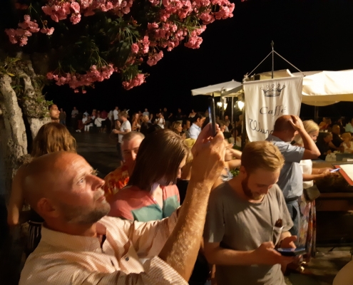 Dagen efter kom de till oss med tåget – och ja – lyckan var total. Tillsammans igen och det på en underbar plats. Vi har varit på Sicilien förut – och det är för oss en favorit. Taormina ligger så fint uppe på berget och även om det är lite turistigt är det superfint.