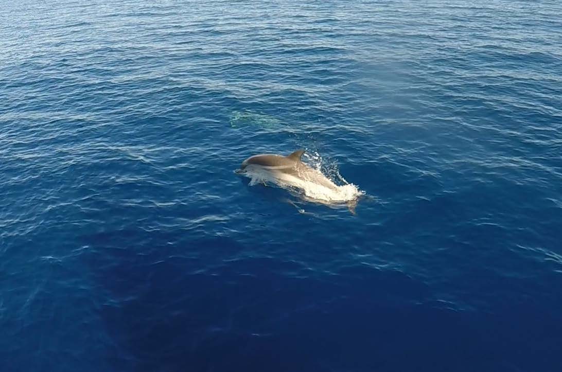 Men vi fick både delfiner och sköldpaddor på film och foto. Jag har aldrig sett så många delfiner. Vi tror att vi hade två olika delfingäng, för de var lite tuffa mot varandra. Först trodde jag att de var väldigt unga och lekfulla, men sedan förstod jag att de jagade bort varandra.