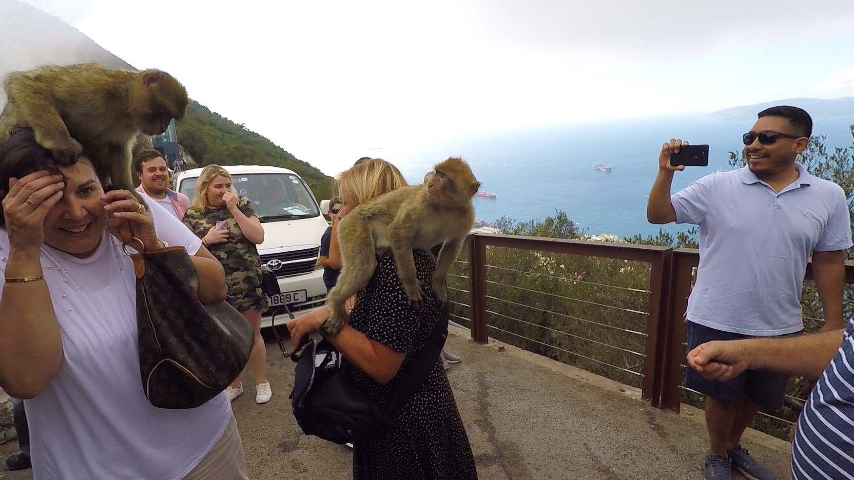 Nästa stopp var en utsiktspunkt nästan högst upp och här var troligen aporna den största attraktionen – eller kanske turisterna? Vår chaufför berättade att det fanns kanske 300 apor på berget och de blir väldigt väl omhändertagna. Sägnen säger att så länge aporna är kvar kommer Gibraltar att tillhöra Storbritannien.