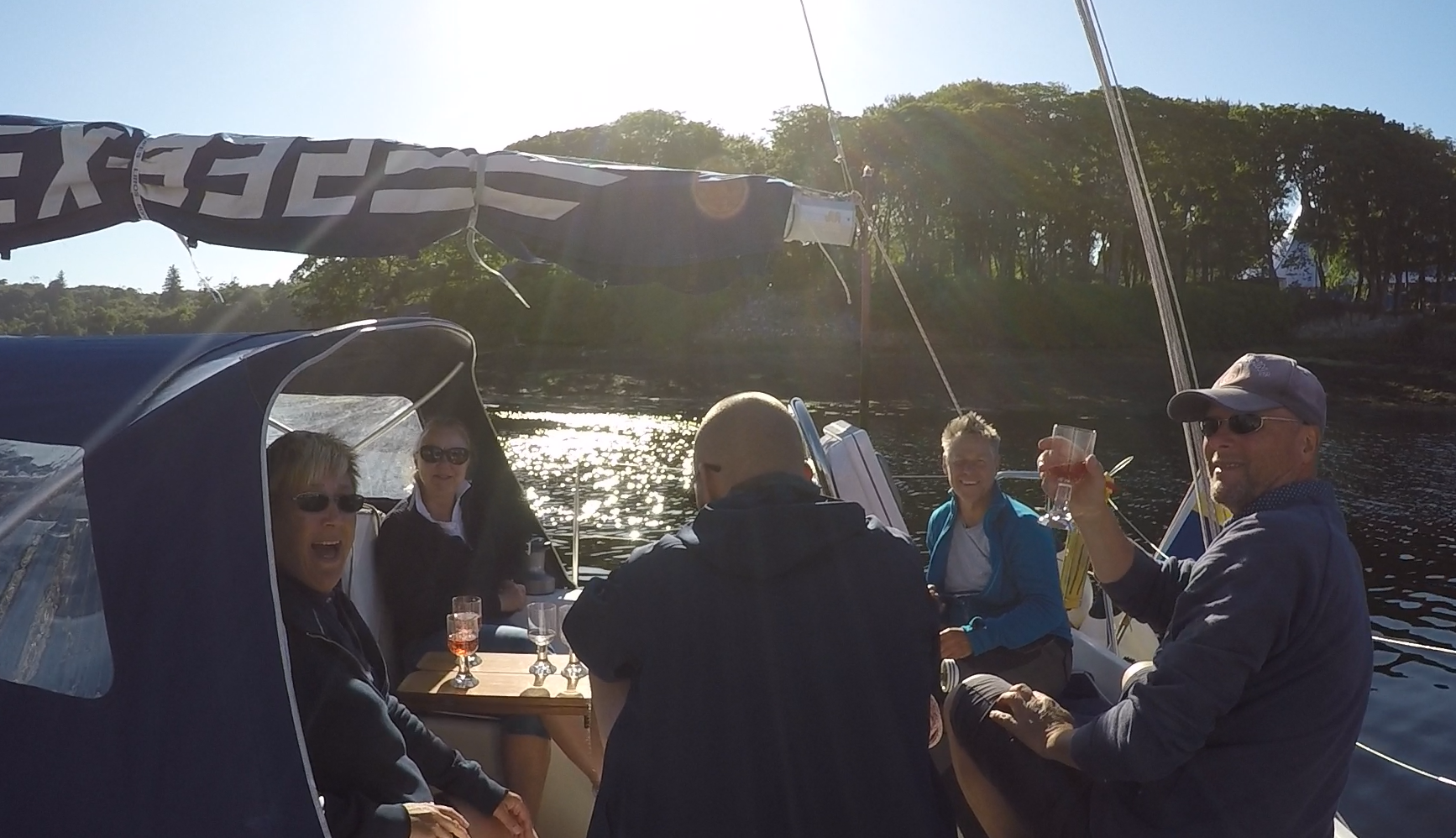 Vi bjöds på ett glas skumpa ombord på Skuggfaxe och gick sedan till en pub för en bit mat. Vi säger ofta att vi ska lägga oss tidigt, men på något vis blir det ändå alltid sent. Det är säkert för att vi alltid har det så trevligt.