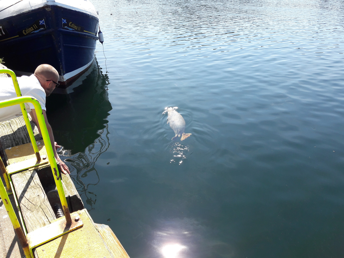 I hamnen simmade flera jättestora sälar, dessa fick vi senare se simma fram till fiskebåtarna och tigga mat.