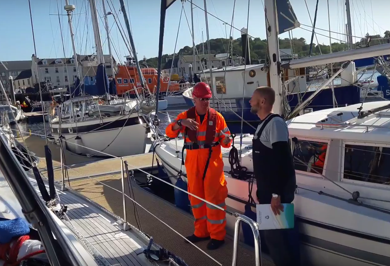 I Stornoway välkomnades vi av en superglad och lätt rosa hamnkapten i röd hjälm. Hamnen badade i solsken, och den leende hamnkaptenen var jättetrevlig och pratsam.