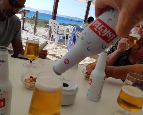 Det blev en lokal Ibiza-öl på strandrestaurangen – men ha ha – när vi läste på flaskan såg vi att ölen produceras i Hamburg. Nå – det var gott ändå.