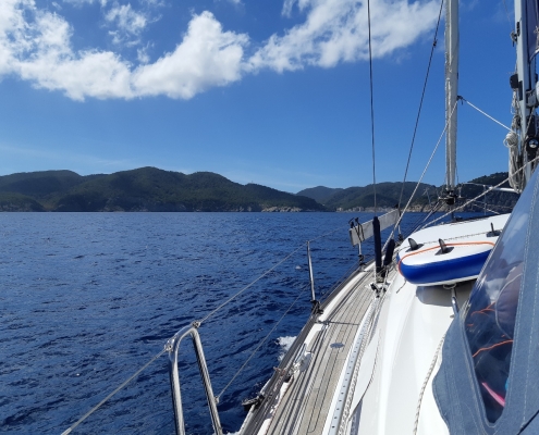 Det är så härligt att ligga för ankar i en fin vik. Särskilt ihop med seglarvänner. Även här fanns det tid till både paddleboard och snorkling medan vi väntade på Michael (Fanta Four) som skulle komma under kvällen. Jag paddlade och gick iland för att leta efter skatter, men såg sedan skylten som förklarade att det var förbjudet. Tacka vet jag allemansrätten.