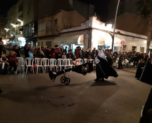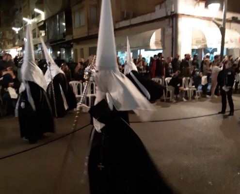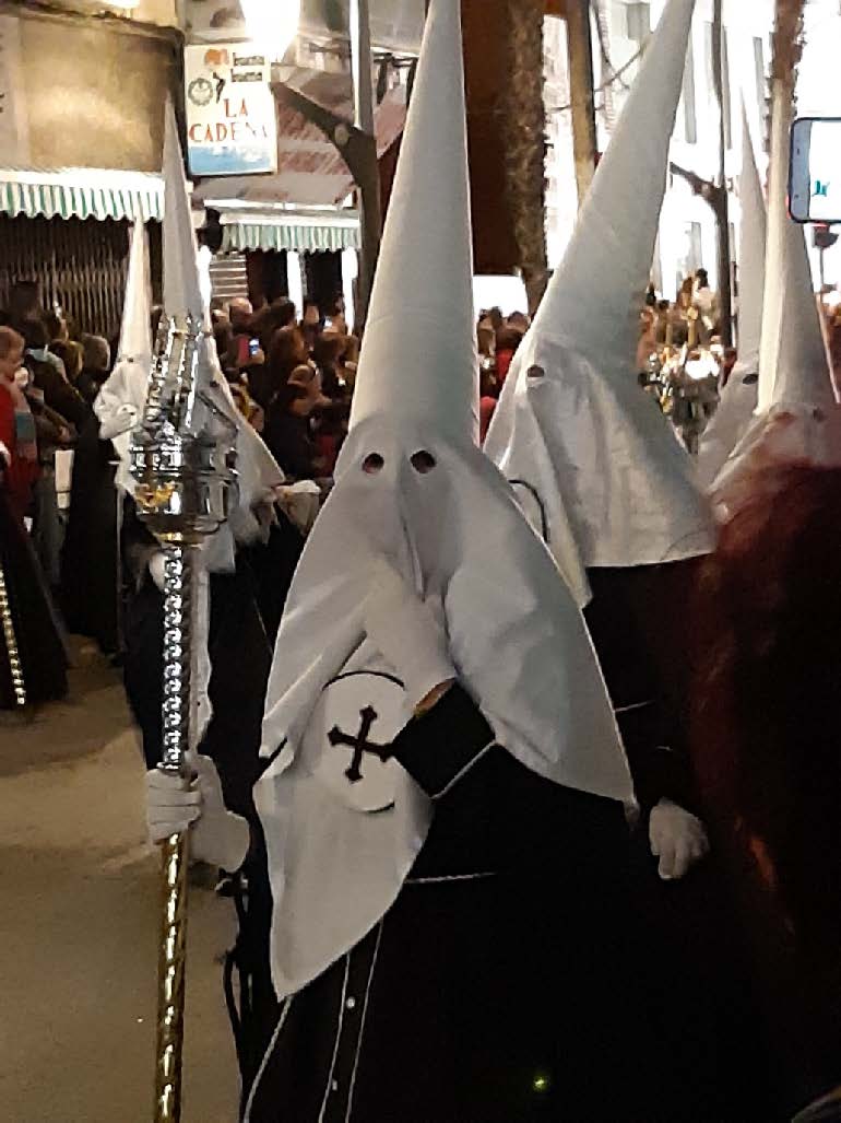 De som har hoods på huvudet kallas Los Nazareos och är troendebotgörare. Denna klädsel kom till redan på 1400 talet för att märka personer som skulle straffas för att de begått religiösa synder.