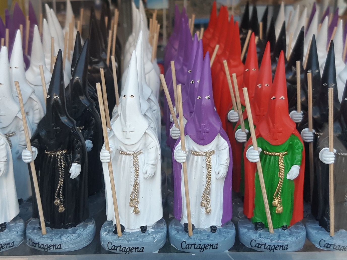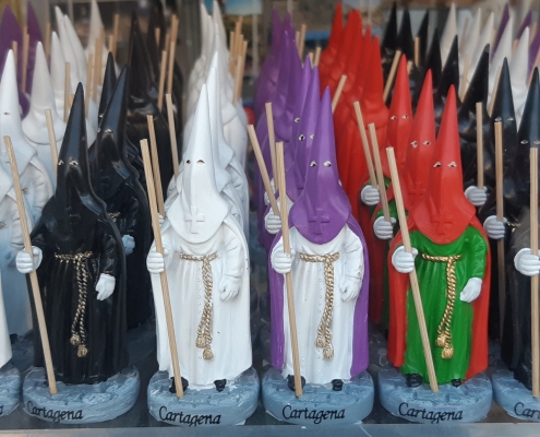 Det måste vara jättetungt för männen eller ”bärarna” som går runt med de tunga statyerna. Processionerna pågår i timmar. Vi har fått uppleva Santa Semana både i Cartagena – Torrevieja och i Alicante.