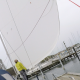 Nu byggs peket om för att klara av ytterligare ett försegel. I skrivande stund är Magnus i en verkstad och färdigställer själva peket. Vi har haft hjälp med riggen och nya fallet är nu fäst provisoriskt i pulpit i väntan på nya seglet. I nästa vecka kommer det expertis från Lundhs segel och tar måtten.
