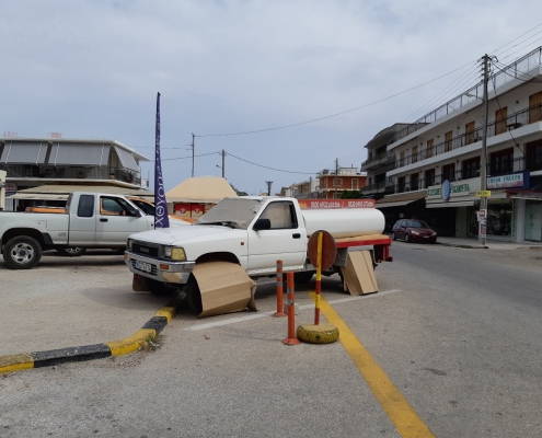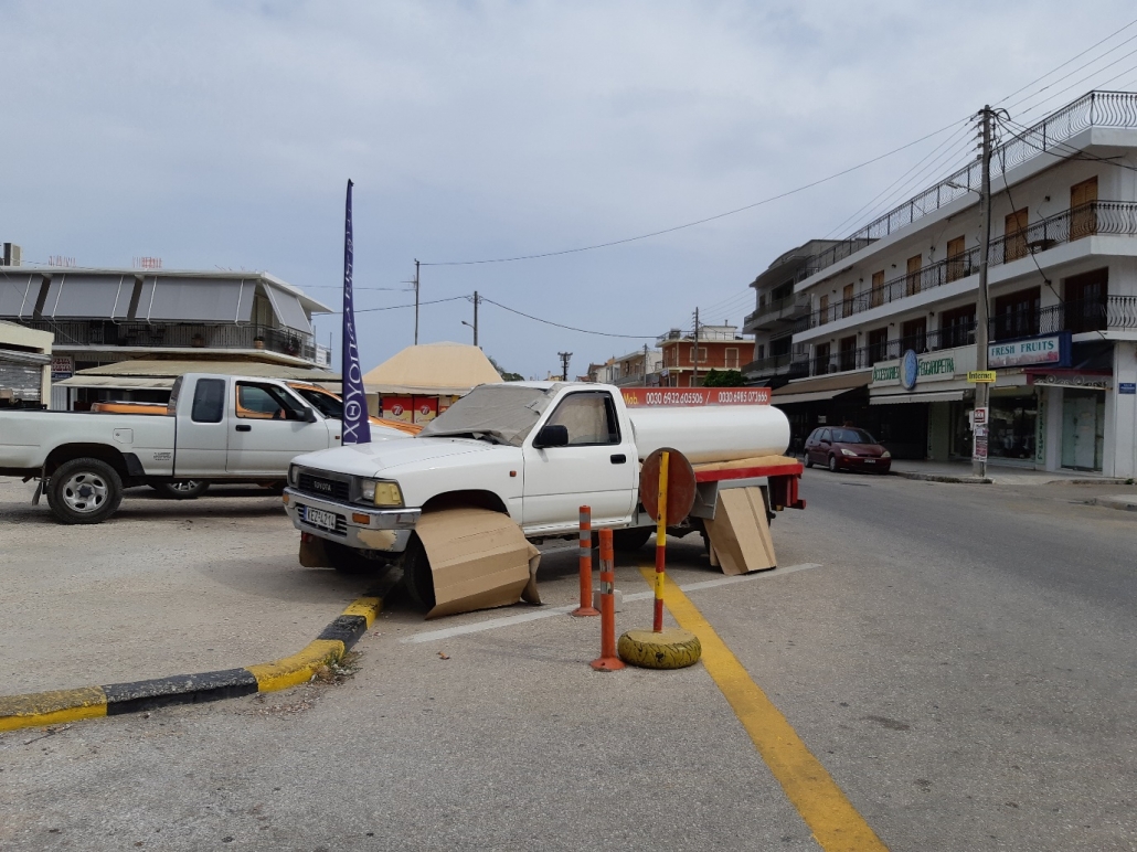 Jag trodde först att vi mådde så dåligt för att det var för varmt. Uttorkning – och det ska man ta på allvar. Det gick inte att finna någon svalka någonstans. Så efter lite oro och funderande blev det till och med en tur med Oskar till sjukhuset i Agrostoli. Och dropp! Sjukhuset var kaotiskt och slitet – men droppet gjorde gott.
