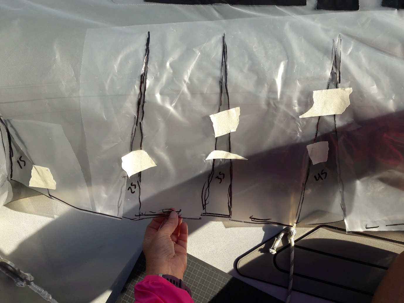 ”Det har jag aldrig provat tidigare så det klarar jag helt säkert.” tänker jag – för att citera Pippi. Men att sy dinghy chaps visade sig vara svårt. Jättesvårt. Jag började med att skapa en mall (såklart). Första försöket gjordes med hjälp av ett gammalt lakan och en sax. Det tog hela dagen.